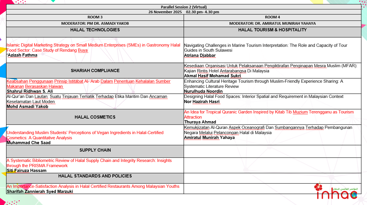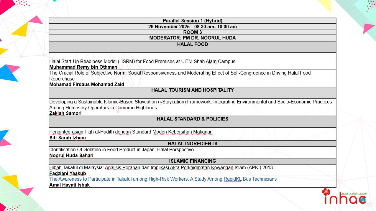 6th International Halal Conference in LOMBOK (INHAC 2025 LOMBOK) brings more variety of contemporary and emerging issues, enhancing the discussion relating to the halal industry and highlighting results not only from scientific research studies but also from social research studies using qualitative and quantitative methodology.